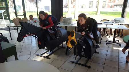 Et pour certains, entrainement course sur les chevaux mécaniques ! 54 secondes pour parcourir le plus de distance...